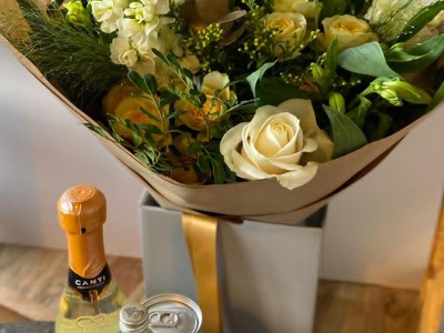 This Cocktail bundle comes with flowers, Pineapple Ciroc Vodka, Prosecco & Soda