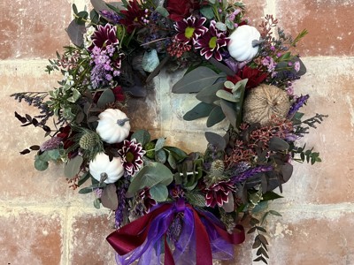 Handmade from sustainable materials - Autumn themed wreath with Purples and reds