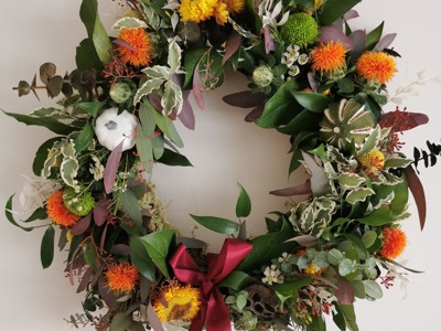 Handmade from sustainable materials - Autumn themed wreath with extra flowers added for some full autumnal colour